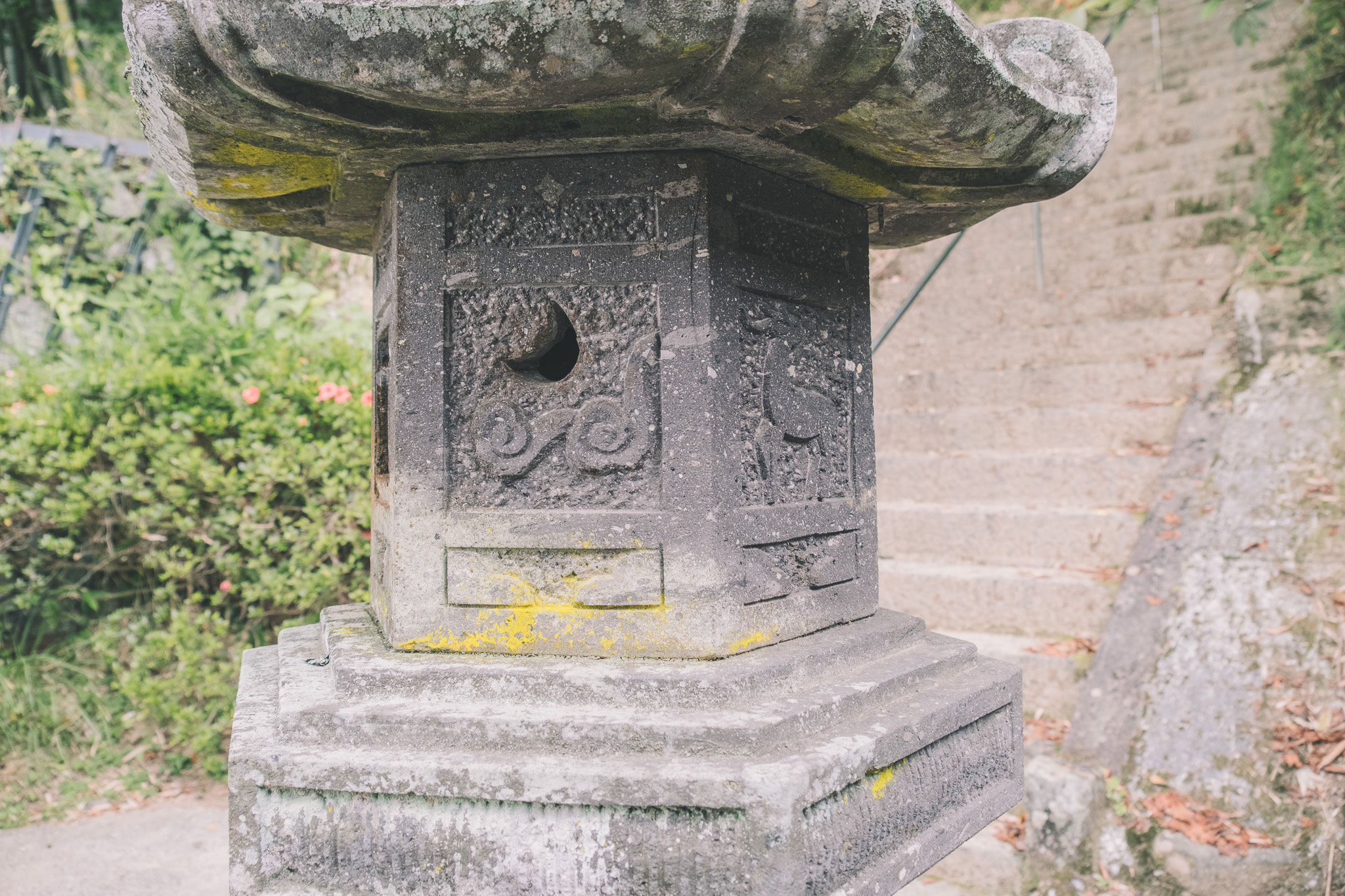 境内で見つけた石灯籠に、ふと目が留まりました。