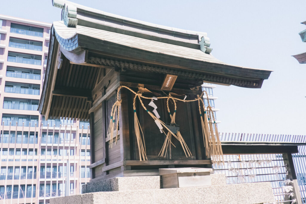 昭和六十三年十二月、この地区を北九州市の表玄関として整備するための再開発事業が起り、施行者の小倉駅前東地区市街地再開発組合と再開発ビルの核店舗株式会社小倉そごうは、神社講社代表と協議を重ねた結果、再開発ビルの屋上に遷座奉り、今後は地域の鎮守として、またこのビルの安全と小倉そごうを始めとする営業者の商売繁盛の守護神としてあがめることになりました。遷座の期日は平成五年十月一日です。