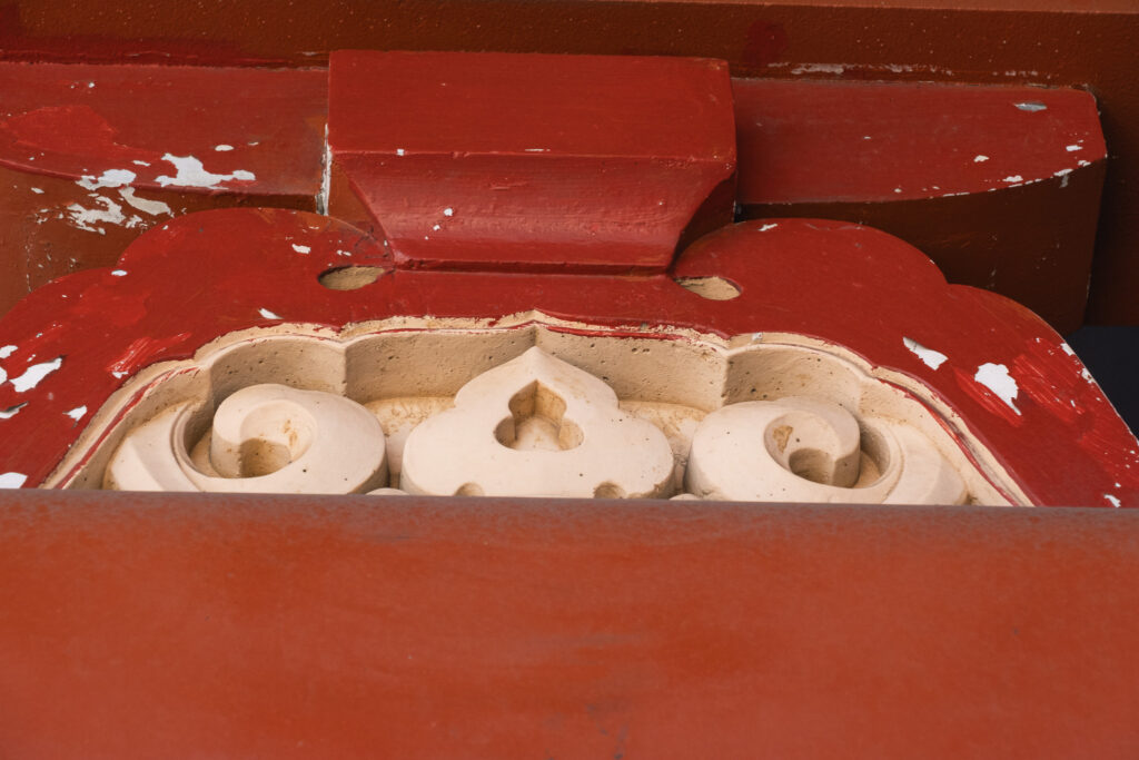 その後、昭和の時代に至って、老朽した祠を改築することになり、信徒総代安倍寛は講社一同と相計り、昭和三十四年に新しい社殿を建立しました。その折、近傍に在った宮地嶽神社の祠も荒廃していましたので、その祭神を瘡守稲荷の新神殿に遷し、相殿祭神として崇敬を加えることになりました。