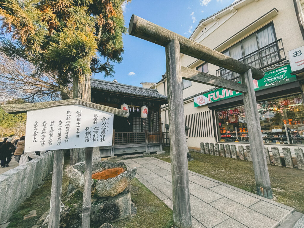 厳島神社の境内の外に「金刀比羅神社(ことひらじんじゃ)」があり、御祭神は大物主神と「佐伯鞍職(さいきくらもと)」。