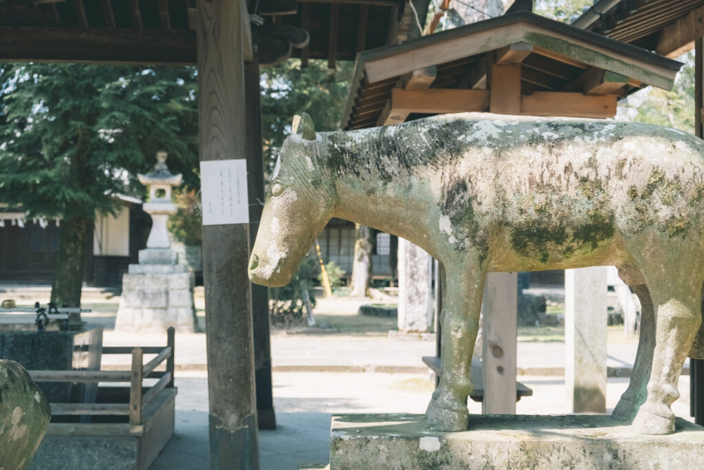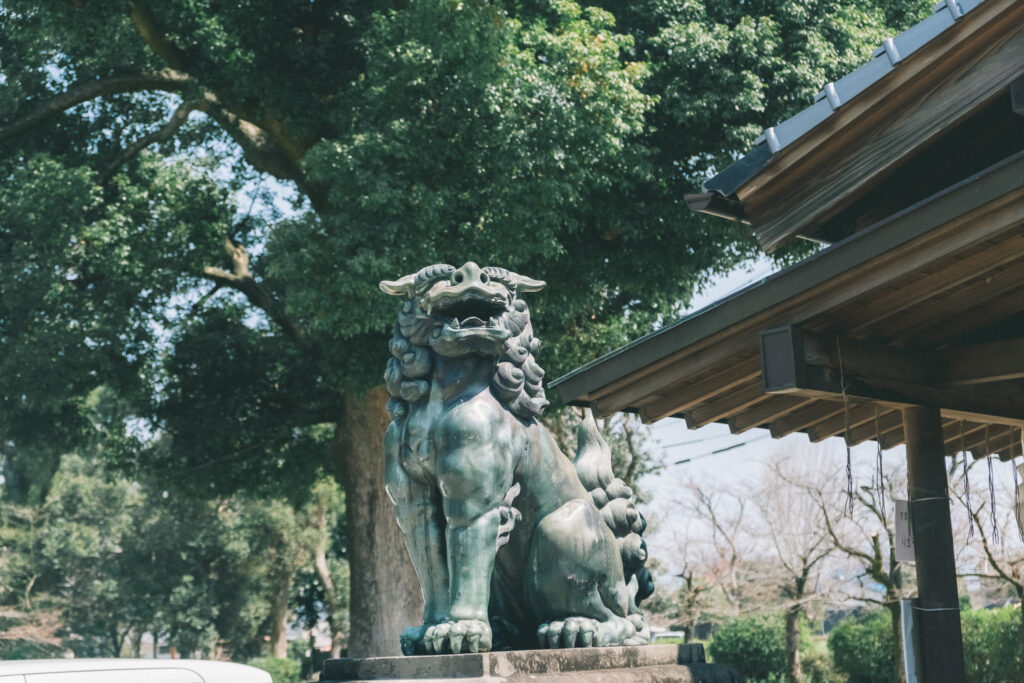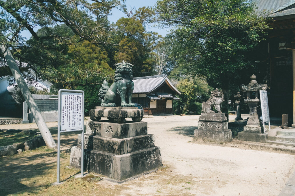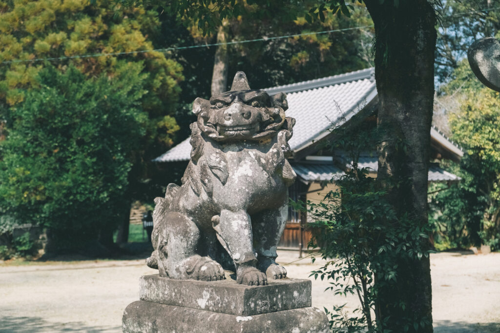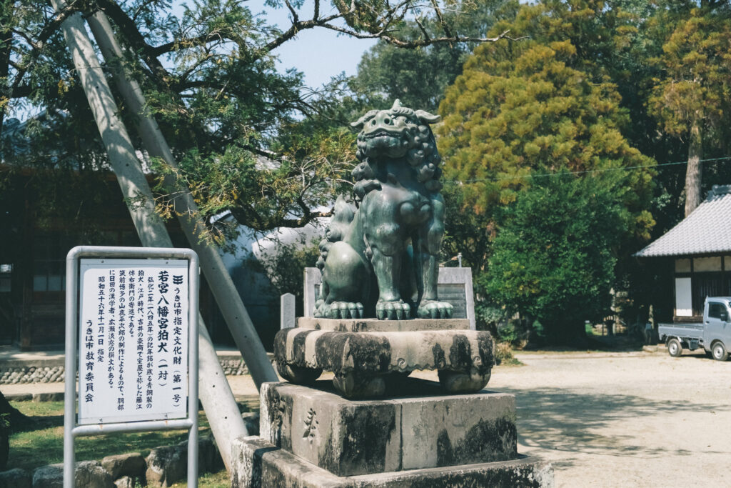 若宮八幡神社の前に行った、隈上正八幡宮には角が折れた狛犬がいました。